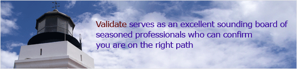 Validate serves as an excellent sounding board of seasoned professionals who can confirm you are on the right path or recommend you to make adjustments if needed.
